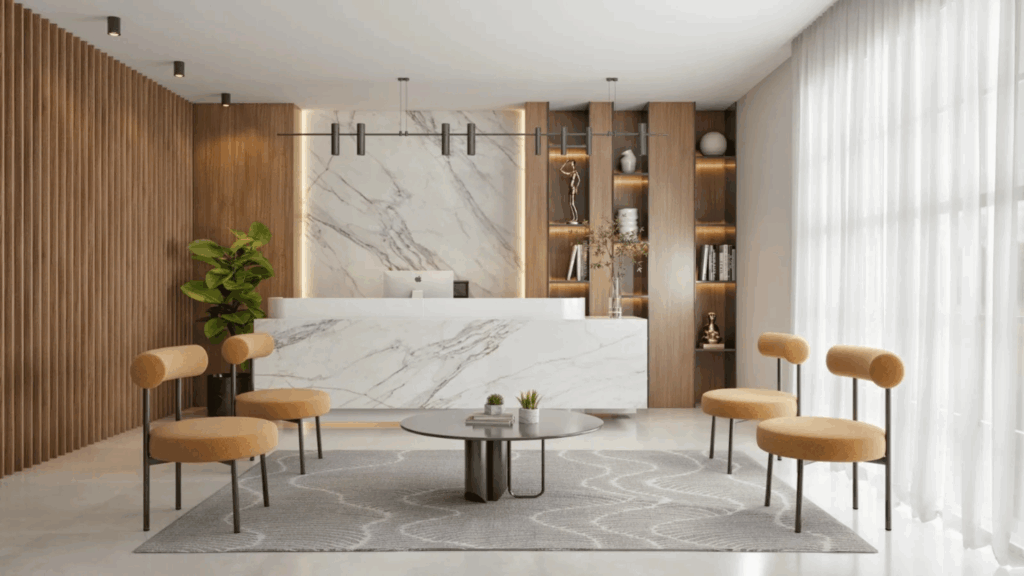 A cadeira Chamonix apresenta um design moderno e elegante, combinando funcionalidade e sofisticação.