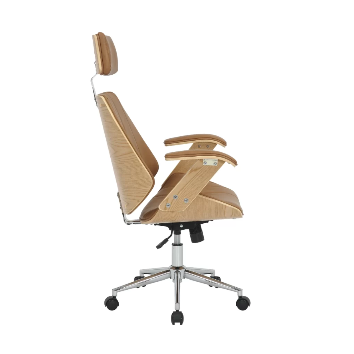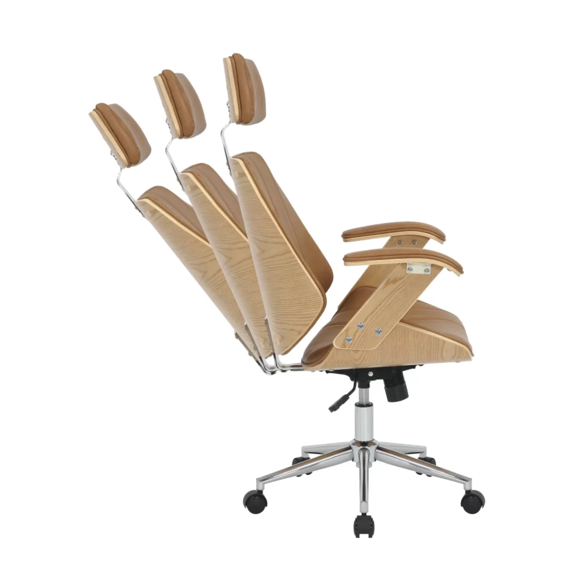 A Cadeira Kopenhagen Presidente é luxuosa, revestida em couro ecológico (PU) com estrutura em madeira. Seu design é perfeito para salas de reuniões. Com mecanismo relax e ajuste de altura do assento, proporciona conforto máximo. Possui encosto de cabeça fixo, adicionando ainda mais conforto à experiência.